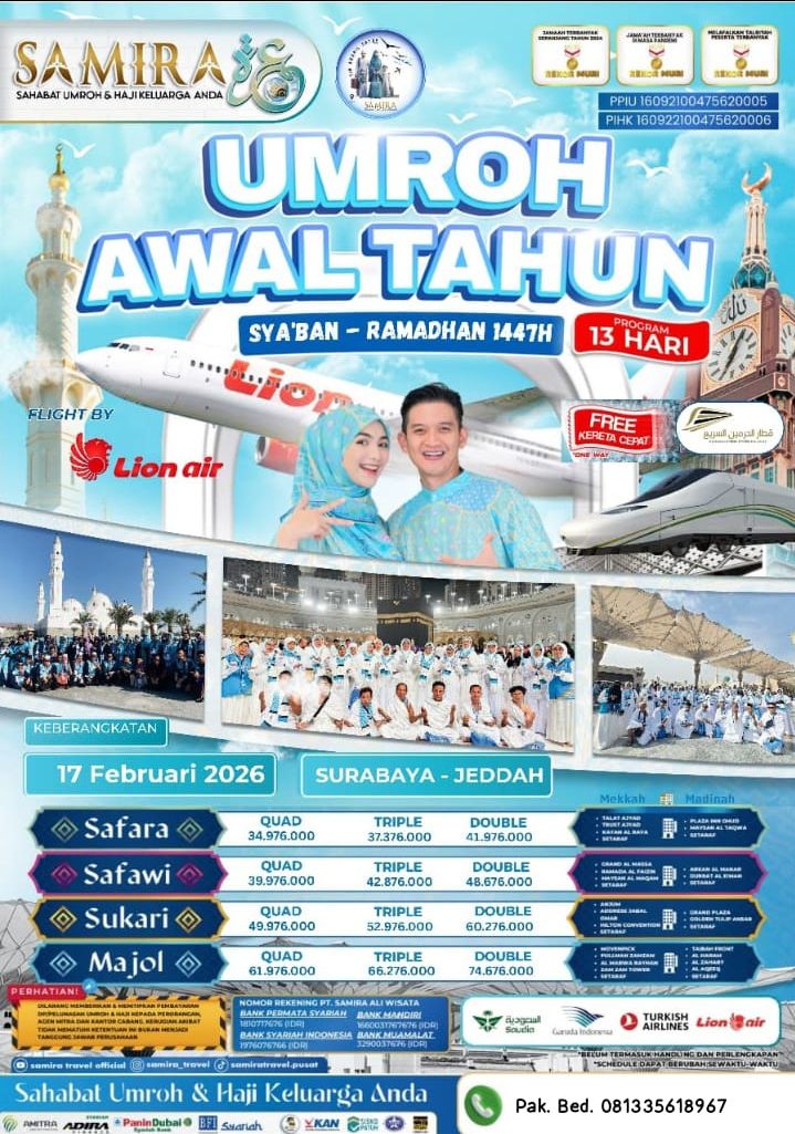 Samira Travel terdaftar resmi di Kementerian Agama, telah memberangkatkan ribuan jamaah, dan mendapatkan banyak testimoni positif dari jamaah. Kepercayaan yang kami dapat kami bangun dari transparansi biaya, kejelasan jadwal, dan komitmen dalam menjaga kenyamanan dan keamanan jamaah.