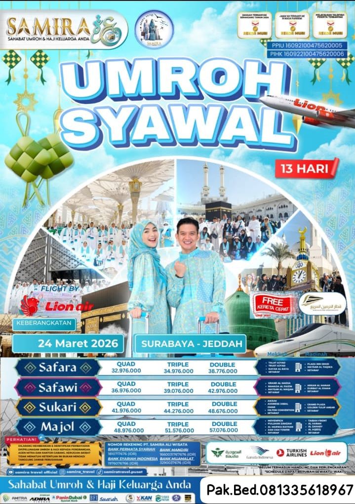 Paket umroh syawal 13 hari adalah paket yang cocok untuk yang ingin bermunajat dengan kusyu, karena umroh syawal lebih longgar dibanding bulan lainnya. Paket ini sudah include umroh 2x dengan semua rangkaian ibadah yang terjaga di makkah dan madinah.
